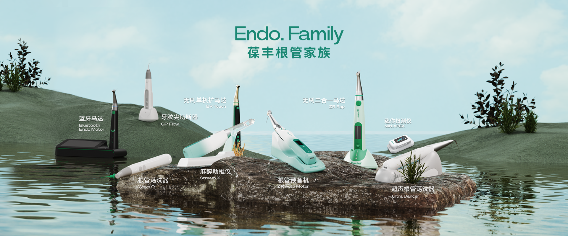 電子產品:根管預備機;根管測量儀;根管蕩洗器;熱熔牙膠充填系統(tǒng);無線便攜式麻醉儀;生物陶瓷治療輔助工具。